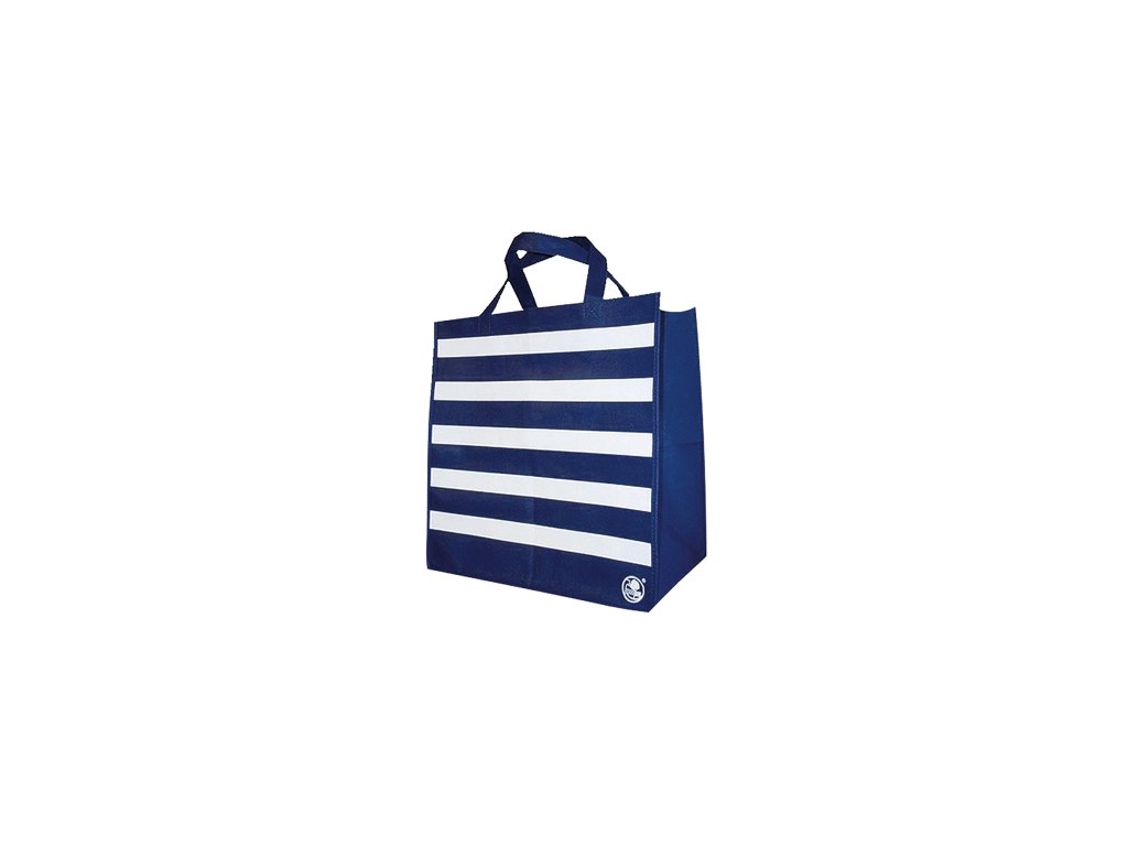 Textilní pevná taška o rozměrech 34 x 36 cm (výška včetně ucha 58 cm).Dekor pruhy modro-bílé.