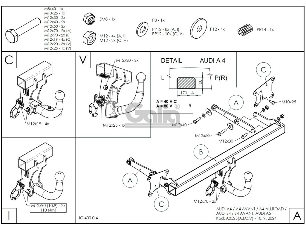Tažné zařízení Audi A4 Allroad 2016/01- (B9), pevné 2 šr., GaliaKVALITNÍ TAŽNÉ ZAŘÍZENÍ, KTERÉ NEREZAVÍ, ZA NEJLEPŠÍ CENU