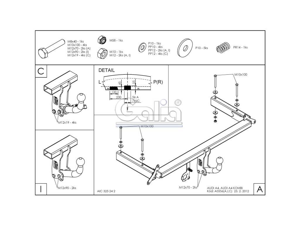 Tažné zařízení Audi A4 Avant (kombi) 1994-2001 (B5), pevný čep 2 šrouby, Galia