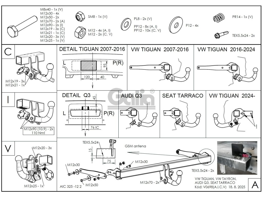Tažné zařízení Audi Q3 11-/Seat Tarraco 18-/Volkswagen Tayron 24-, vertikalKVALITNÍ TAŽNÉ ZAŘÍZENÍ, KTERÉ NEREZAVÍ, ZA NEJLEPŠÍ CENU