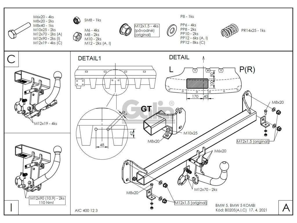 Tažné zařízení BMW 5-řada sedan, kombi, GT pevný čep KVALITNÍ TAŽNÉ ZAŘÍZENÍ, KTERÉ NEREZAVÍ, ZA NEJLEPŠÍ CENU + Tažné zařízení největšího slovenského výrobce má unikátní povrchovou úpravu zinkováním s 10-ti letou zárukou na ochranu proti korozi. Zinkování vytváří stříbrný povrch, který se po čase vlivem oxidace změní na šedý odstín. Přesnou sériovou výrobou na nejmodernějších strojích je zaručena snadná a rychlá montáž na vozidlo a dobrá cena. Tažné zařízení je homologováno dle předpisu ECE 55R nebo EU94/20. Výrobce: GALIA Slovakia s.r.o., SlovenskoDoplňkové parametry