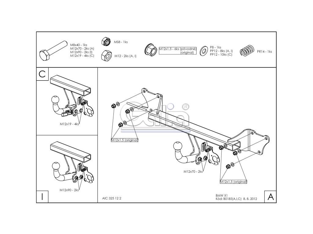 Tažné zařízení BMW X1 2009-2015 (E84) , pevný čep 2 šrouby, Galia