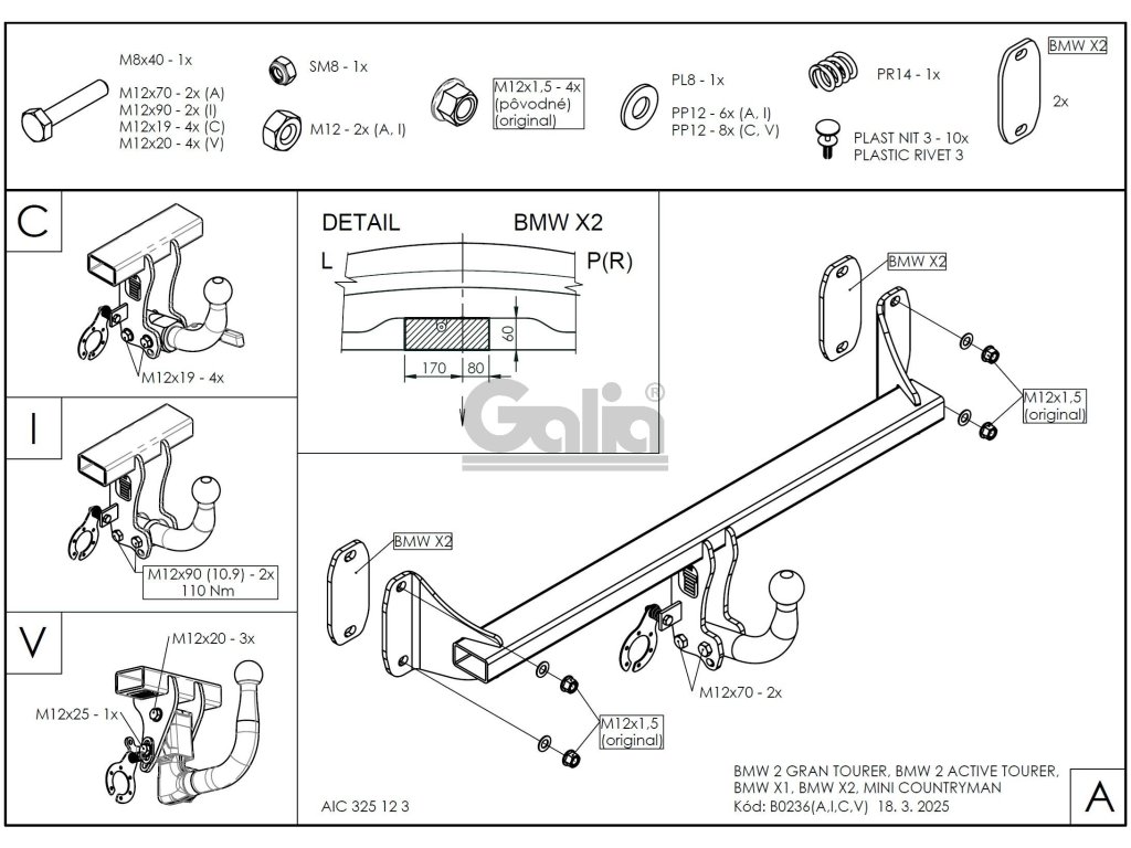 Tažné zařízení Mini Countryman/BMW X1/X2/2 GT/AT 14-, vertikalKVALITNÍ TAŽNÉ ZAŘÍZENÍ, KTERÉ NEREZAVÍ, ZA NEJLEPŠÍ CENU