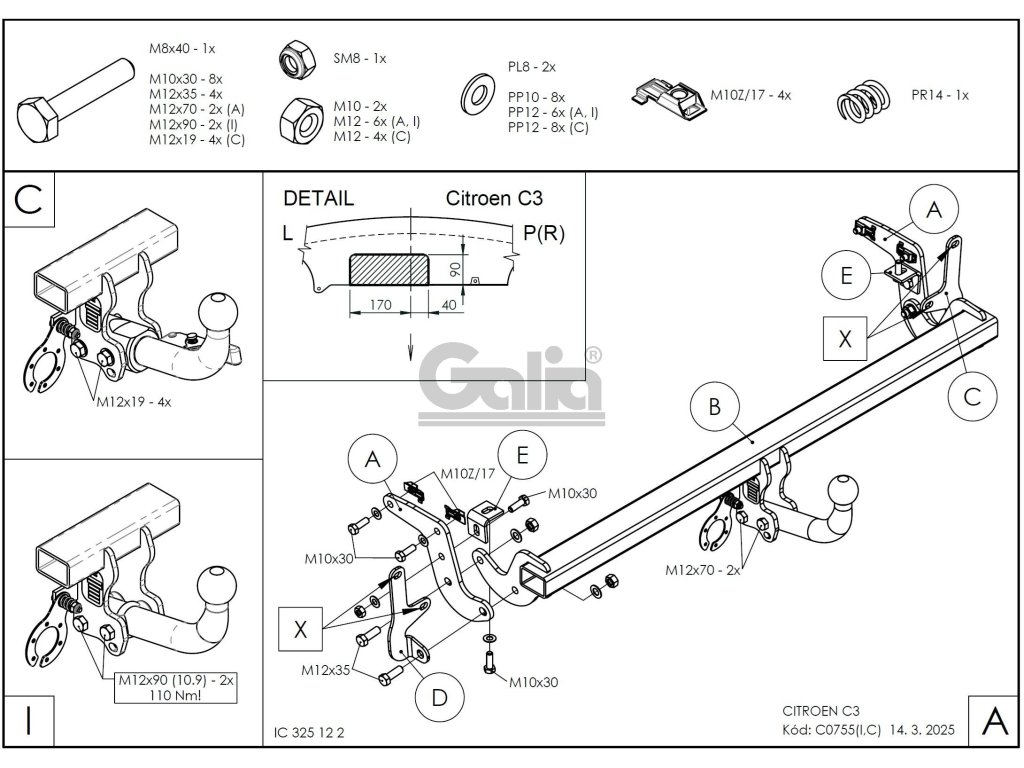 Tažné zařízení Citroen C3 2024- , bajonet, Galia