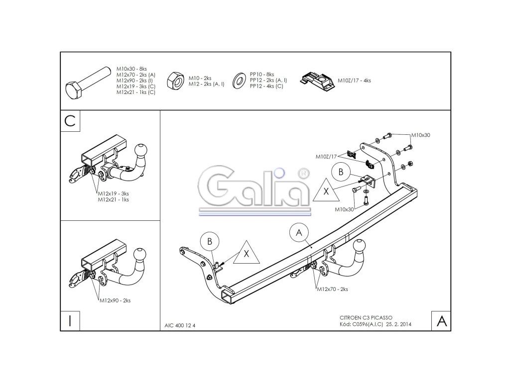 Tažné zařízení Citroen C3 Picasso 2009- , pevný čep 2 šrouby, Galia+ KVALITNÍ TAŽNÉ ZAŘÍZENÍ, KTERÉ NEREZAVÍ, ZA NEJLEPŠÍ CENU + Tažné zařízení největšího slovenského výrobce má unikátní povrchovou úpravu zinkováním s 10-ti letou zárukou na ochranu proti korozi. Zinkování vytváří stříbrný povrch, který se po čase vlivem oxidace změní na šedý odstín. Přesnou sériovou výrobou na nejmodernějších strojích je zaručena snadná a rychlá montáž na vozidlo a dobrá cena.
