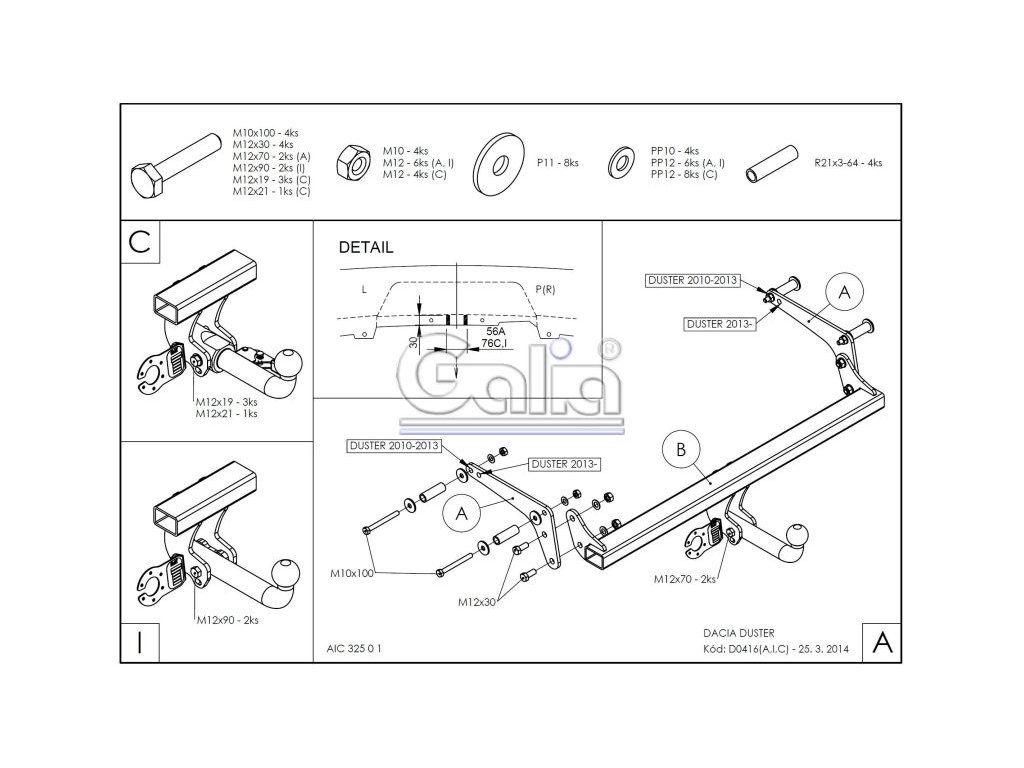 Tažné zařízení Dacia Duster 2010-2013 , pevný čep 2 šrouby, Galia