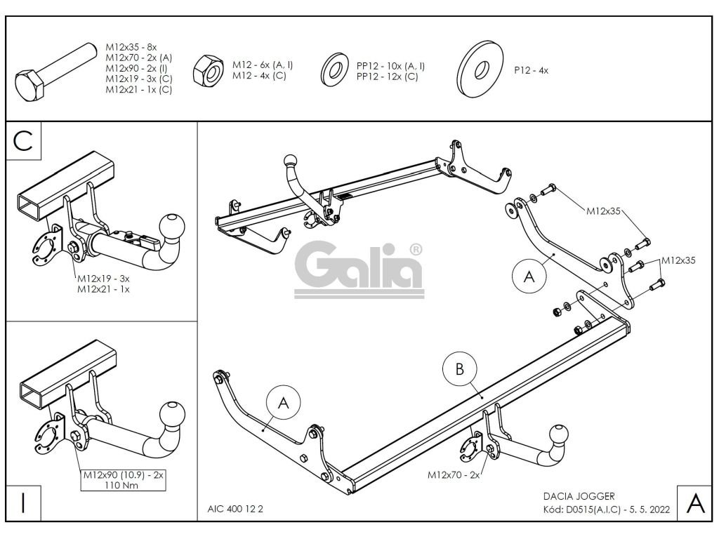 Tažné zařízení Dacia Jogger 2022- , bajonet, Galia