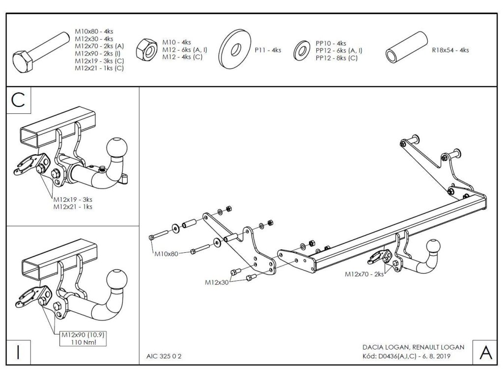 Tažné zařízení je homologováno dle předpisu ECE 55R nebo EU94/20.