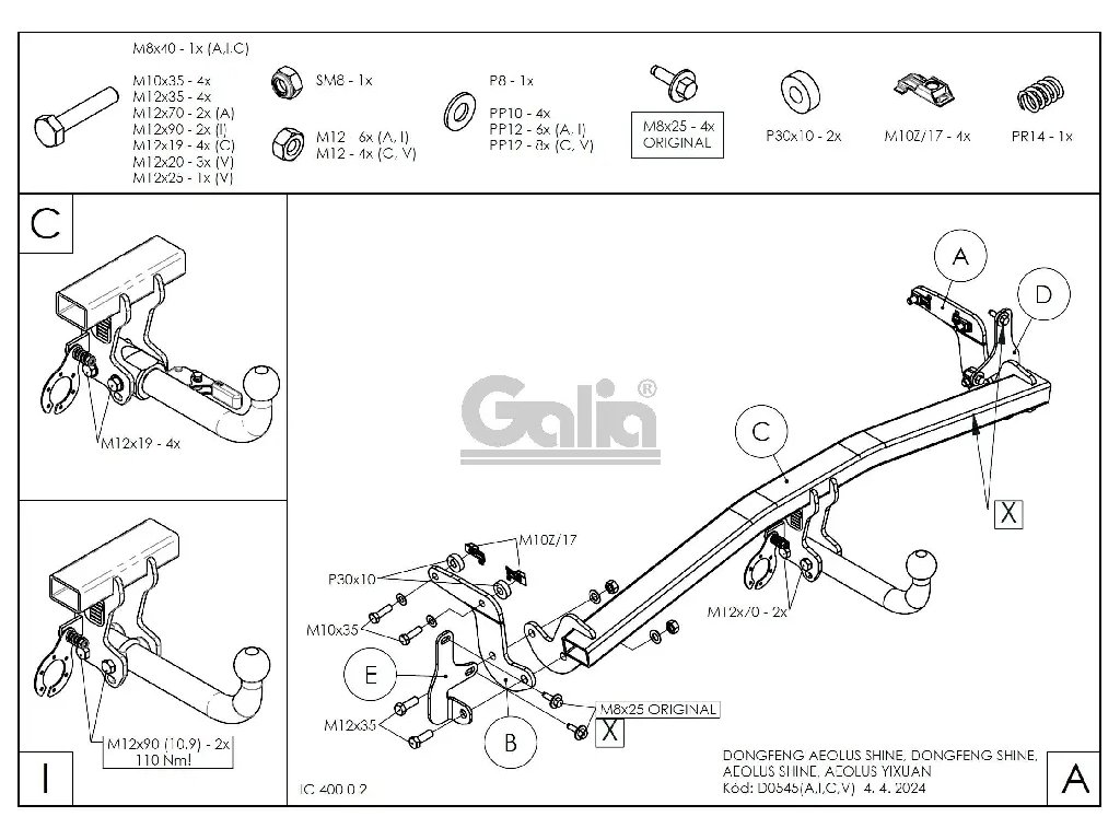 Tažné zařízení Dongfeng Aeolus Shine 2019- , pevné 2 šr., GaliaDoplňkové parametry