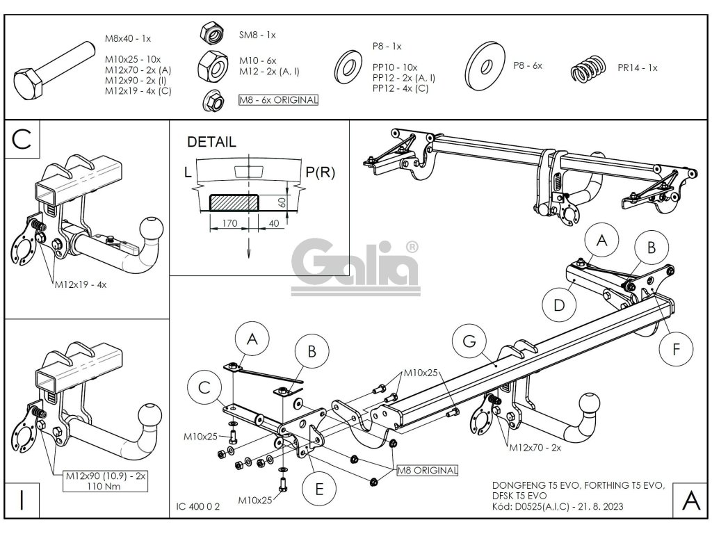 Tažné zařízení Dongfeng T5 EVO 2020- , pevné 2 šr., Galia