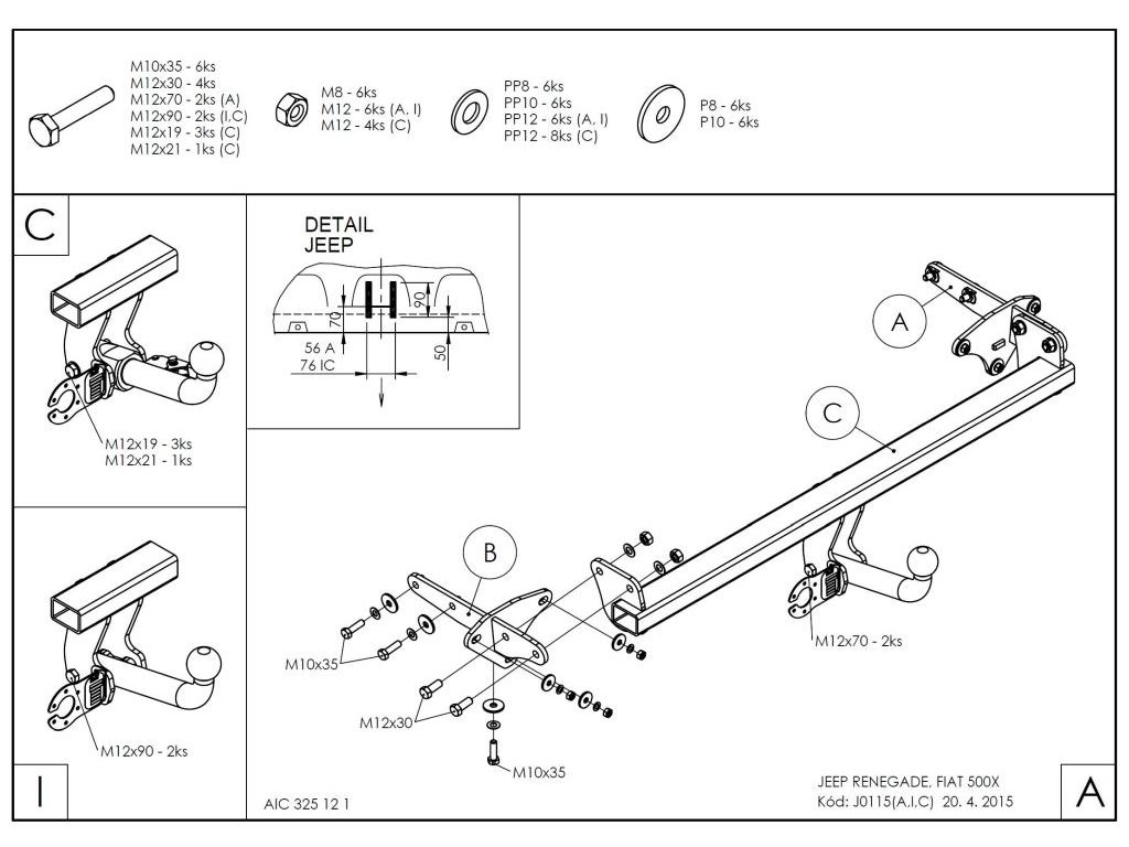 Tažné zařízení Fiat 500X / Jeep Renegade / Compass 14-, pevné