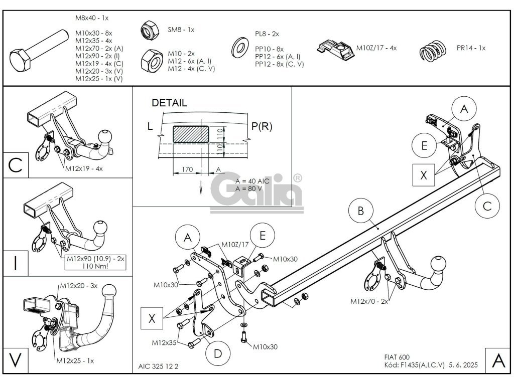 Tažné zařízení Fiat 600 2023- , pevné 2 šr., Galia