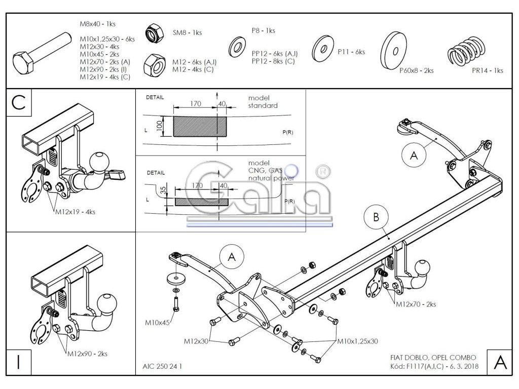 Tažné zařízení Fiat Doblo / Opel Combo (2012-), také 4x4 a Maxi a CNG - odnímatelné, od 2010