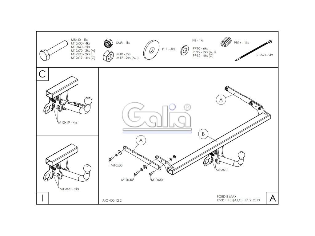 Ford B-Max + KVALITNÍ TAŽNÉ ZAŘÍZENÍ, KTERÉ NEREZAVÍ, ZA NEJLEPŠÍ CENU + Tažné zařízení největšího slovenského výrobce má unikátní povrchovou úpravu zinkováním s 10-ti letou zárukou na ochranu proti korozi. Zinkování vytváří stříbrný povrch, který se po čase vlivem oxidace změní na šedý odstín. Přesnou sériovou výrobou na nejmodernějších strojích je zaručena snadná a rychlá montáž na vozidlo a dobrá cena. Tažné zařízení je homologováno dle předpisu ECE 55R nebo EU94/20. , na povrchovou úpravu zinkováním 10 let. Výrobce: GALIA Slovakia s.r.o., SlovenskoDoplňkové parametry