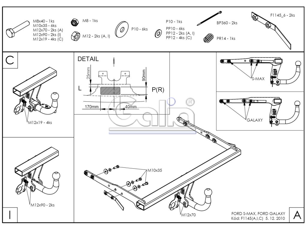Tažné zařízení Ford Galaxy 2006-2015 , pevný čep 2 šrouby, Galia