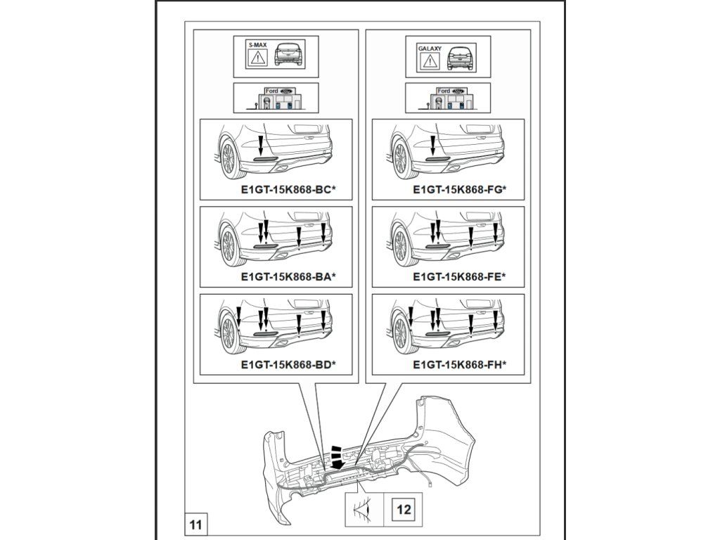 Tažné zařízení Ford Galaxy / S-Max (bez regulace výšky), od 2015 Bezdotykové otevírání kufru je možné použít po přesunutí senzorů (senzory na středu nárazníku jsou součástí potřebného výřezu). Spodní senzor je umístěn místo senzoru vrchního, vrchní senzor je umístěn ještě o něco výše. Kryt nárazníku je možné objednat v dealerství FORD (Galaxy 2006345; S-Max 2006344). U S-Max ST-line je nutné provést větší výřez, než uvádí šablona v návodu. DOPŘEJTE SI KVALITU - NENÍ DRAHÁ! Značkové ORIGINÁLNÍ tažné zařízení od předního světového výrobce firmy WESTFALIA. Nejvyšší kvalita je nyní za bezkonkurenční cenu. Originální tažná zařízení (dodávaná automobilkám do prvovýroby) respektují ergonomii vozidla a Vašemu autu sluší. Tažné zařízení je vybaveno odolným a dodnes nepřekonaným automatickým vertikálním systémem odnímání kulového čepu s integrovaným zámkem proti krádeži. Vyznačuje se extrémní pevností a dlouhou životností. Po odejmutí čepu a sklopení zásuvky je tažné zařízení na vozidle neviditelné. Je vhodné i pro profesionální použití. Tažná zařízení Westflia jsou oštřena nejlepší antikorozní povrchovou úpravou KTL. Montáž neomezuje záruku nového vozidla! Westfalia je originální díl většiny světových automobilek. Na pevnost tažného zařízení poskytujeme doživotní záruku. U tohoto výrobku zaručujeme pevnost pro použití s nosičem jízdních kol. Tažné zařízení je homologováno dle předpisu ECE 55R nebo EU94/20. Výrobce: Westfalia-Automotive, NěmeckoDoplňkové parametry