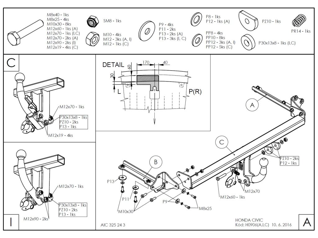 Tažné zařízení Honda Civic 5dv. - odnímatelné, od 2011
