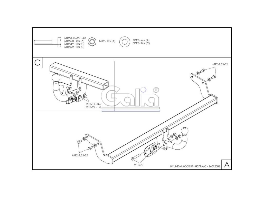Tažné zařízení Hyundai Accent 2006- , pevný čep 2 šrouby, Galia+ KVALITNÍ TAŽNÉ ZAŘÍZENÍ, KTERÉ NEREZAVÍ, ZA NEJLEPŠÍ CENU + Tažné zařízení největšího slovenského výrobce má unikátní povrchovou úpravu zinkováním s 10-ti letou zárukou na ochranu proti korozi. Zinkování vytváří stříbrný povrch, který se po čase vlivem oxidace změní na šedý odstín. Přesnou sériovou výrobou na nejmodernějších strojích je zaručena snadná a rychlá montáž na vozidlo a dobrá cena.