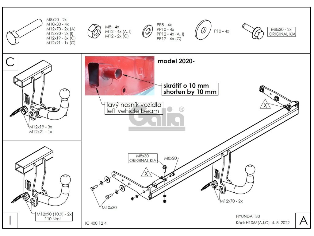 Tažné zařízení Hyundai i30 3/5dv. 18-, bajonetUpozornění - k primárnímu používání s nosiči kol doporučujeme volit pevné tažné zařízení. V důsledku dynamického působení svislého zatížení dochází ke snižování životnosti bajonetových systémů.