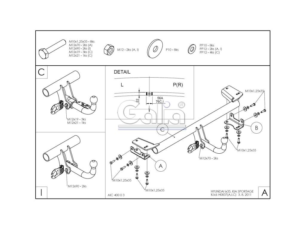 Tažné zařízení Hyundai ix35 2010-2015, pevný čep 2 šrouby, GaliaTažné zařízení pro Hyundai ix35 od největšího slovenského výrobce má unikátní povrchovou úpravu zinkováním s 10-ti letou zárukou na ochranu proti korozi.