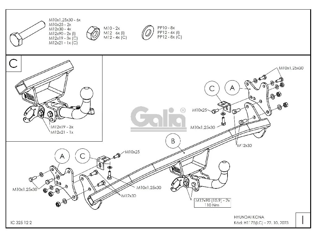 Tažné zařízení Hyundai Kona 23-, bajonetUpozornění - k primárnímu používání s nosiči kol doporučujeme volit pevné tažné zařízení. V důsledku dynamického působení svislého zatížení dochází ke snižování životnosti bajonetových systémů.