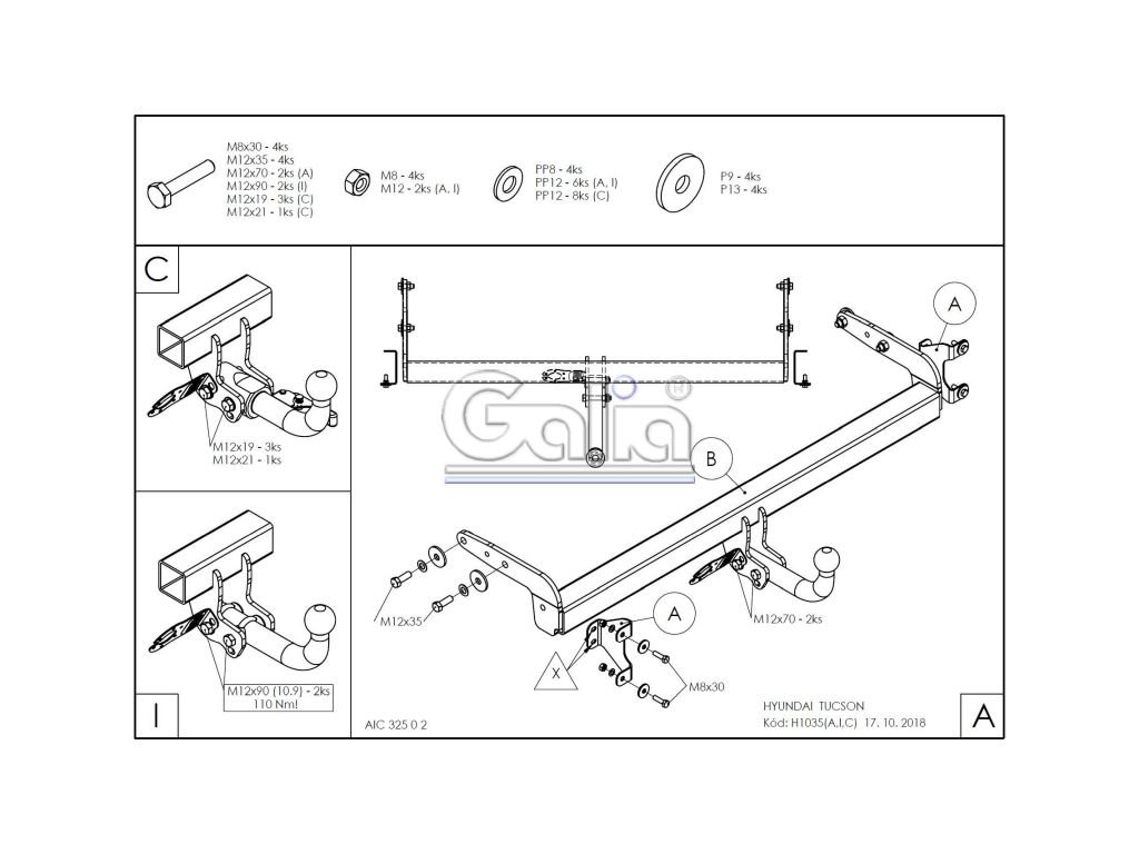 Tažné zařízení Hyundai Tucson 18-, bajonetUpozornění - k primárnímu používání s nosiči kol doporučujeme volit pevné tažné zařízení. V důsledku dynamického působení svislého zatížení dochází ke snižování životnosti bajonetových systémů.