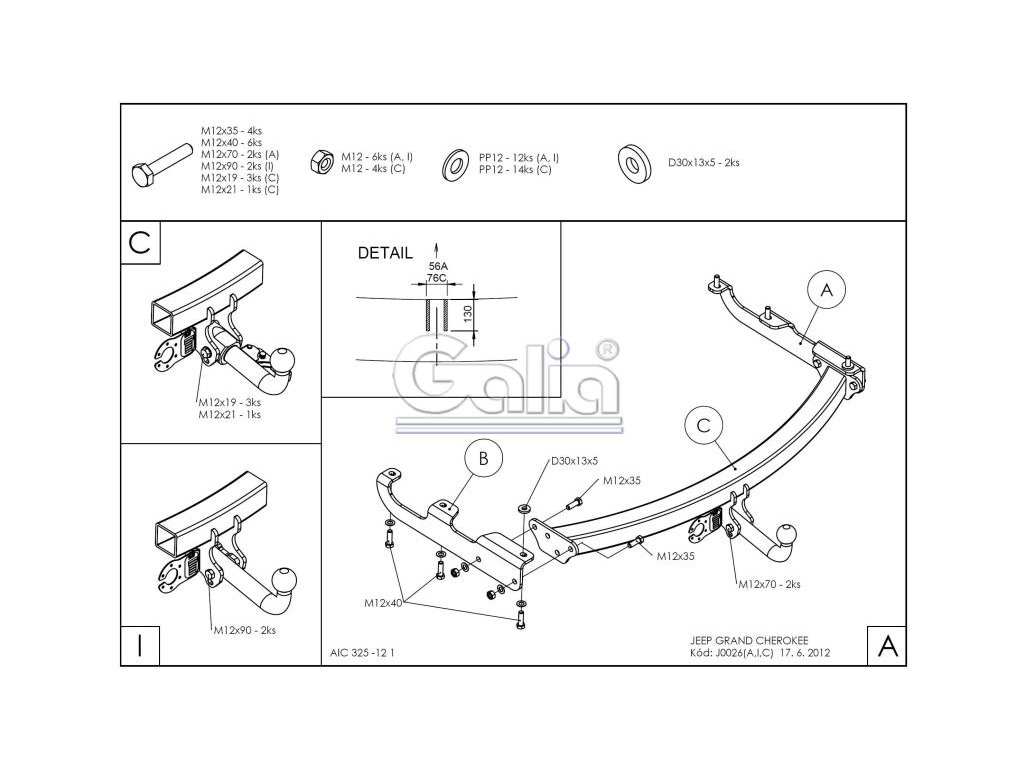 Tažné zařízení Jeep Grand Cherokee 1999-2005 (WJ/WG) , pevný čep 2 šrouby, Galia
