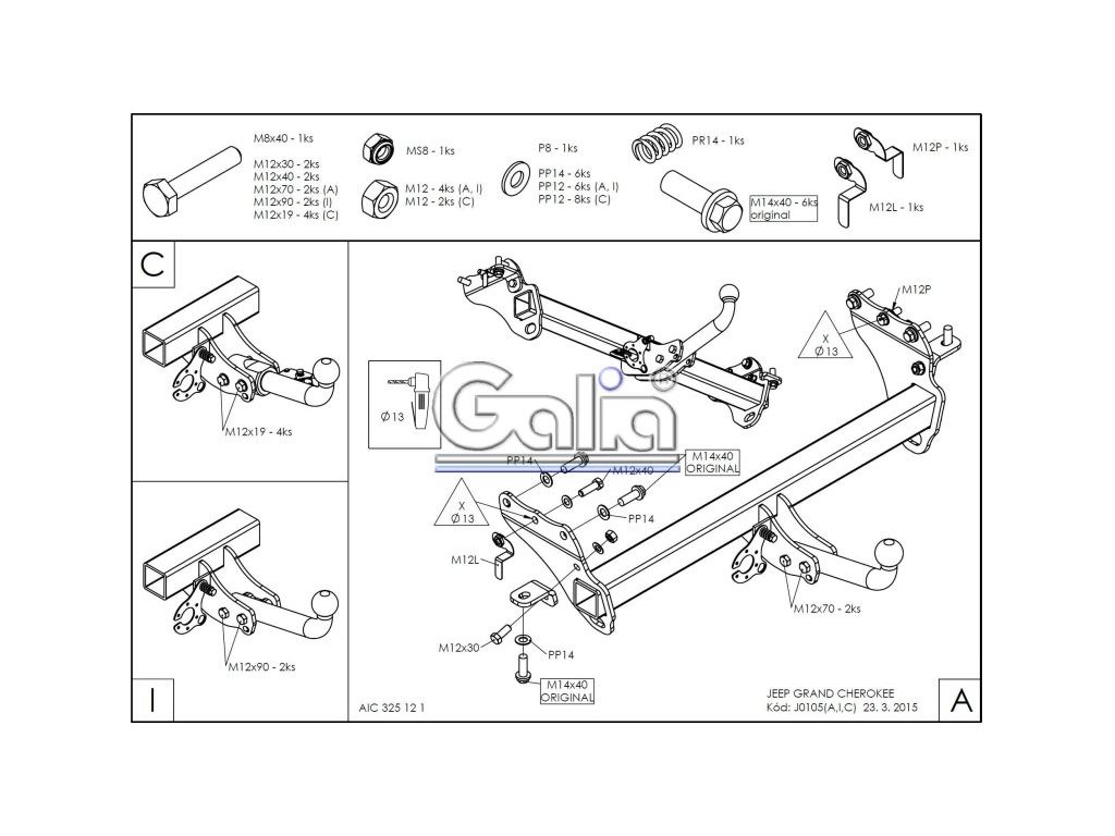 Tažné zařízení Jeep Grand Cherokee 2013- (WK) , pevný čep 2 šrouby, Galia Tažné zařízení Jeep Grand Cherokee / Commander, pevnéKVALITNÍ TAŽNÉ ZAŘÍZENÍ, KTERÉ NEREZAVÍ, ZA NEJLEPŠÍ CENU + Tažné zařízení největšího slovenského výrobce má unikátní povrchovou úpravu zinkováním s 10-ti letou zárukou na ochranu proti korozi. Zinkování vytváří stříbrný povrch, který se po čase vlivem oxidace změní na šedý odstín. Přesnou sériovou výrobou na nejmodernějších strojích je zaručena snadná a rychlá montáž na vozidlo a dobrá cena. Tažné zařízení je homologováno dle předpisu ECE 55R nebo EU94/20. , na povrchovou úpravu zinkováním 10 let. Výrobce: GALIA Slovakia s.r.o., Slovensko