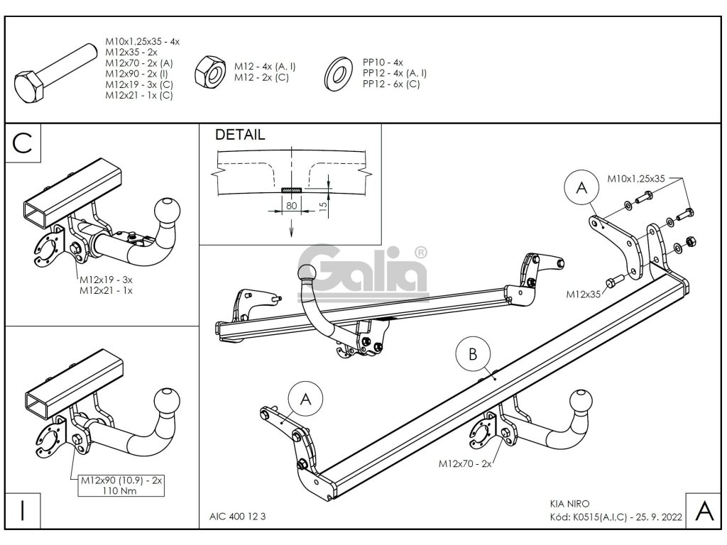 Tažné zařízení Kia Niro 2022- , bajonet, Galia