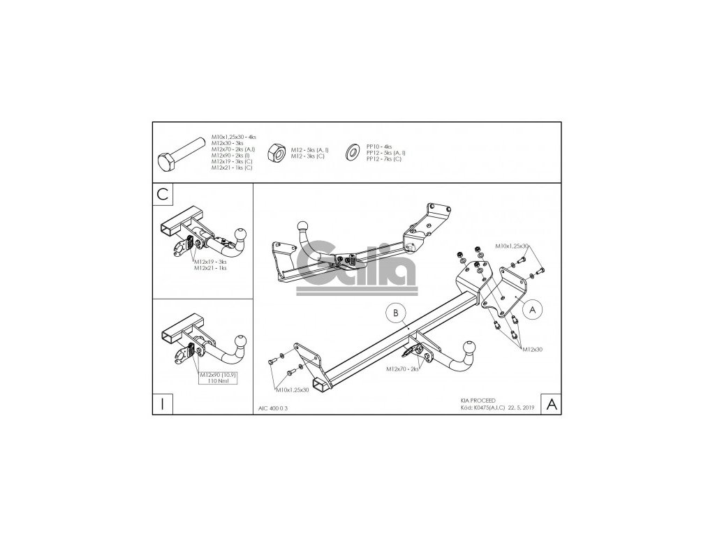 Tažné zařízení Kia Pro-Ceed 5dv. - odnímatelné, od 2018Upozornění - k primárnímu používání s nosiči kol doporučujeme volit pevné tažné zařízení. V důsledku dynamického působení svislého zatížení dochází ke snižování životnosti bajonetových systémů.
