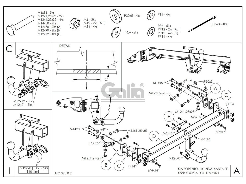 Tažné zařízení Kia Sorento 2020- , pevné, Galia