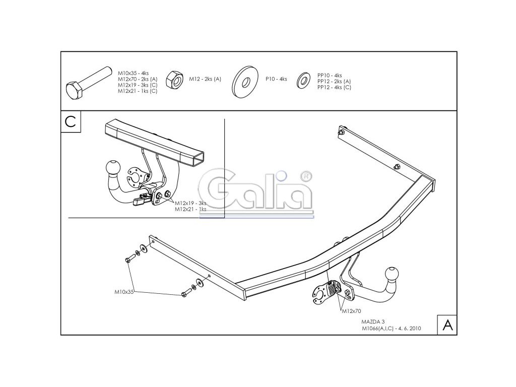 Tažné zařízení Mazda 3 HB 2009-2013, pevné, GaliaVhodné pro vozidla: Mazda 3 5dv. 03- Mazda 3 3dv. 03-09!