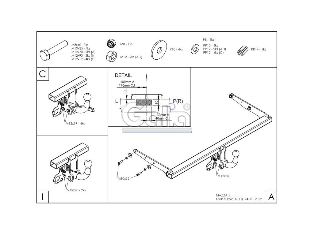 Tažné zařízení Mazda 5 2005-2008 , pevný čep 2 šrouby, Galia
