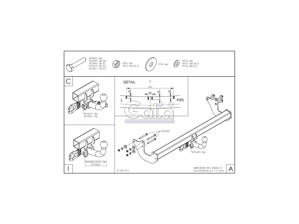 Tažné zařízení Mercedes Benz Vito 2024- (BR447) , bajonet, Galia Tažné zařízení Mercedes Vito / Viano / V-Klasse Na inovovaném modelu Viano 07/2010 - nutno provést větší výřez Upozornění - k primárnímu používání s nosiči kol doporučujeme volit pevné tažné zařízení. V důsledku dynamického působení svislého zatížení dochází ke snižování životnosti bajonetových systémů. KVALITNÍ TAŽNÉ ZAŘÍZENÍ, KTERÉ NEREZAVÍ, ZA NEJLEPŠÍ CENU Tažné zařízení největšího slovenského výrobce má unikátní povrchovou úpravu zinkováním s 10-ti letou zárukou na ochranu proti korozi. Zinkování vytváří stříbrný povrch, který se po čase vlivem oxidace změní na šedý odstín. Přesnou sériovou výrobou na nejmodernějších strojích je zaručena snadná a rychlá montáž na vozidlo a dobrá cena. Poloautomatický odnímatelný systém se vyznačuje nadstandardní spolehlivostí, jednoduchou obsluhou a kvalitou zpracování a výhodnou cenou. Součástí dodávky je kryt kulového čepu, záslepka a pouzdro čepu po odejmutí. Tažné zařízení je homologováno dle předpisu ECE 55R nebo EU94/20. Výrobce: Gália Slovakia s.r.o., SlovenskoDoplňkové parametry