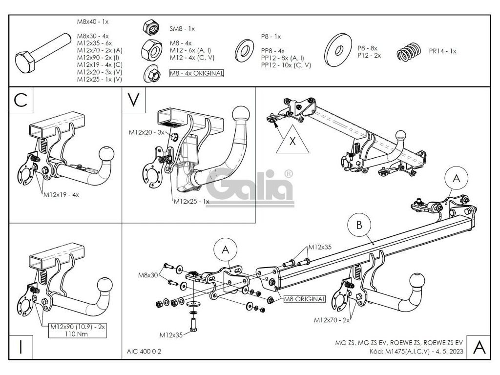 Tažné zařízení MG ZS 2019- , odnímatelný bajonet, GaliaUpozornění - k primárnímu používání s nosiči kol doporučujeme volit pevné tažné zařízení. V důsledku dynamického působení svislého zatížení dochází ke snižování životnosti bajonetových systémů.