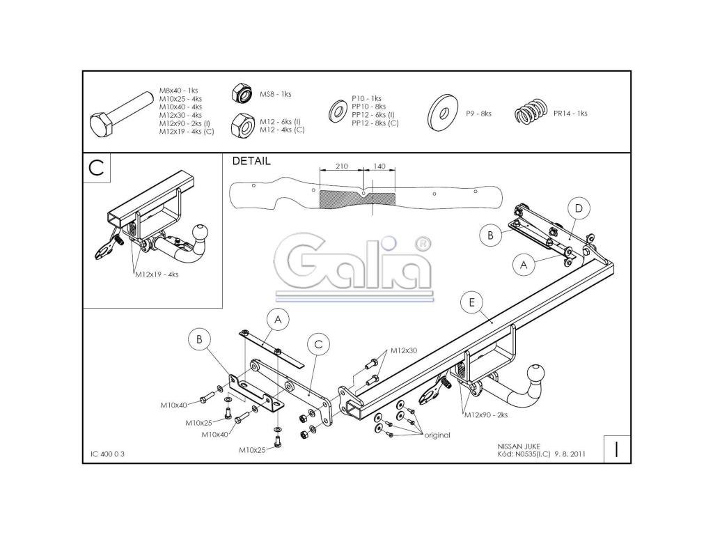 Tažné zařízení Nissan Juke 2WD 2010-, pevný čep 2 šrouby, Galia