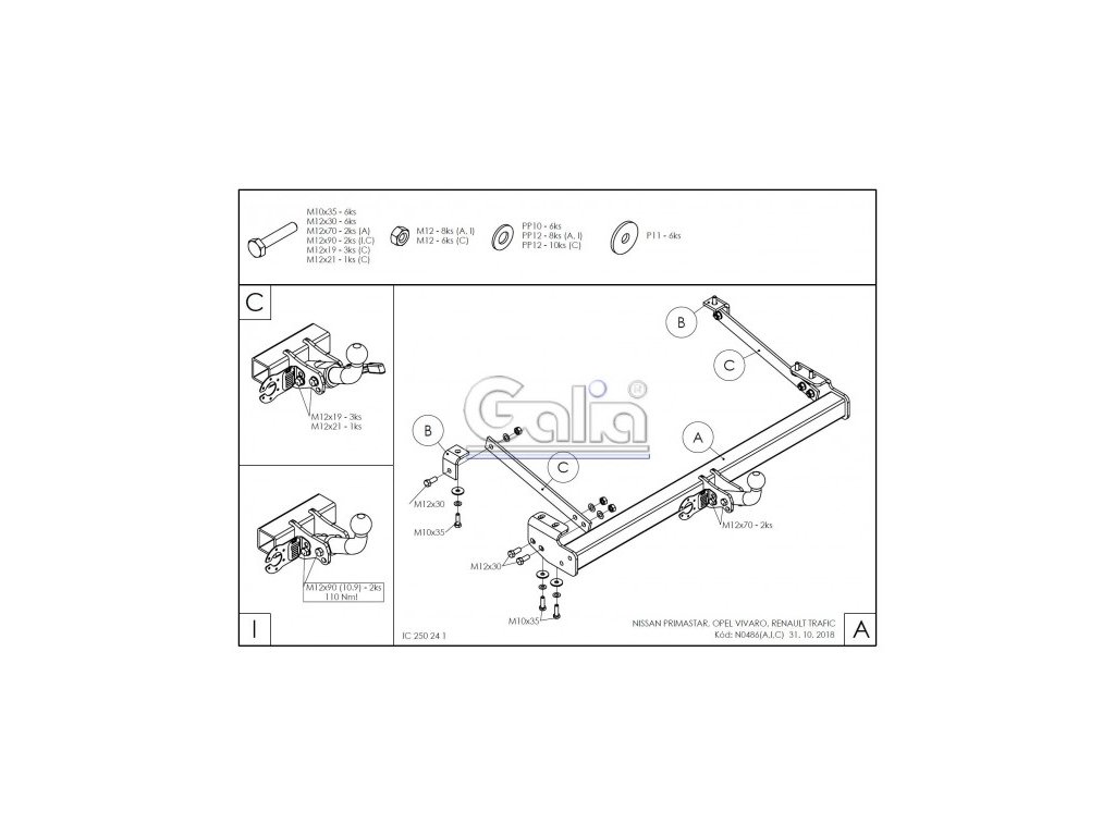 Tažné zařízení Nissan Primastar / Opel Vivaro / Renault Trafic, bajonet