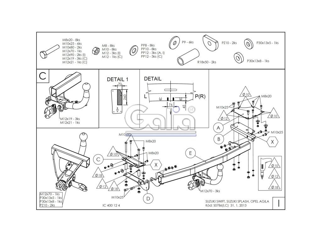 Tažné zařízení Opel Agila 2008- , pevný čep 2 šrouby, Galia Tažné zařízení Suzuki Swift / Splash, Opel Agila?Suzuki Swift 3/5dv. (2005 - 2010) - ne 4WD, čep překrývá mlhovku Suzuki Spalsh (2008 - ) Opel Agila (2008 - ) - NENÍ OVĚŘENO + KVALITNÍ TAŽNÉ ZAŘÍZENÍ, KTERÉ NEREZAVÍ, ZA NEJLEPŠÍ CENU + Tažné zařízení největšího slovenského výrobce má unikátní povrchovou úpravu zinkováním s 10-ti letou zárukou na ochranu proti korozi. Zinkování vytváří stříbrný povrch, který se po čase vlivem oxidace změní na šedý odstín. Přesnou sériovou výrobou na nejmodernějších strojích je zaručena snadná a rychlá montáž na vozidlo a dobrá cena. Tažné zařízení je homologováno dle předpisu ECE 55R nebo EU94/20. , na povrchovou úpravu zinkováním 10 let. Výrobce: GALIA Slovakia s.r.o., Slovensko