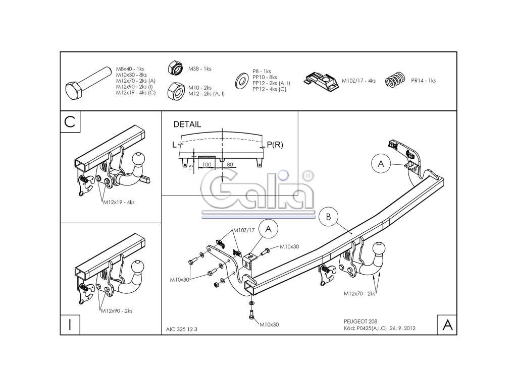Tažné zařízení Peugeot 208 2012- , pevný čep 2 šrouby, GaliaKVALITNÍ TAŽNÉ ZAŘÍZENÍ, KTERÉ NEREZAVÍ, ZA NEJLEPŠÍ CENU + Tažné zařízení největšího slovenského výrobce má unikátní povrchovou úpravu zinkováním s 10-ti letou zárukou na ochranu proti korozi. Zinkování vytváří stříbrný povrch, který se po čase vlivem oxidace změní na šedý odstín. Přesnou sériovou výrobou na nejmodernějších strojích je zaručena snadná a rychlá montáž na vozidlo a dobrá cena.