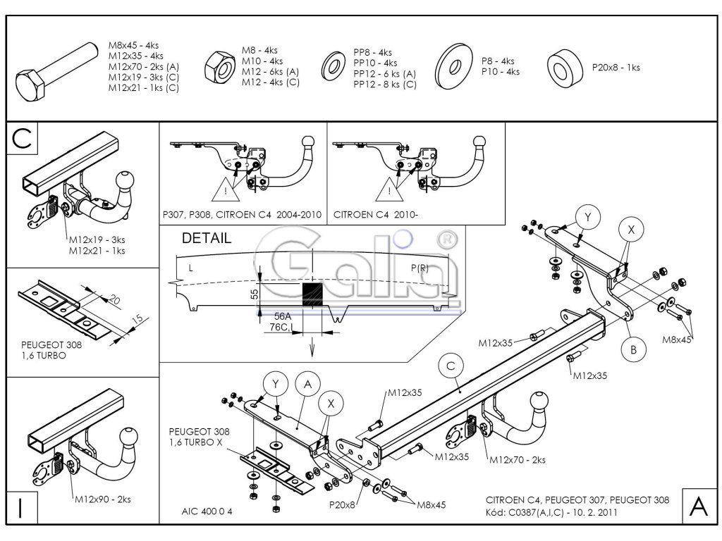 Tažné zařízení Peugeot 307 HB 2001-2005, pevný čep 2 šrouby, Galia Tažné zařízení Citroen C4+coupé / Peugeot 307+308 + KVALITNÍ TAŽNÉ ZAŘÍZENÍ, KTERÉ NEREZAVÍ, ZA NEJLEPŠÍ CENU + Tažné zařízení největšího slovenského výrobce má unikátní povrchovou úpravu zinkováním s 10-ti letou zárukou na ochranu proti korozi. Zinkování vytváří stříbrný povrch, který se po čase vlivem oxidace změní na šedý odstín. Přesnou sériovou výrobou na nejmodernějších strojích je zaručena snadná a rychlá montáž na vozidlo a dobrá cena. Tažné zařízení je homologováno dle předpisu ECE 55R nebo EU94/20. , na povrchovou úpravu zinkováním 10 let. Výrobce: GALIA Slovakia s.r.o., SlovenskoDoplňkové parametry