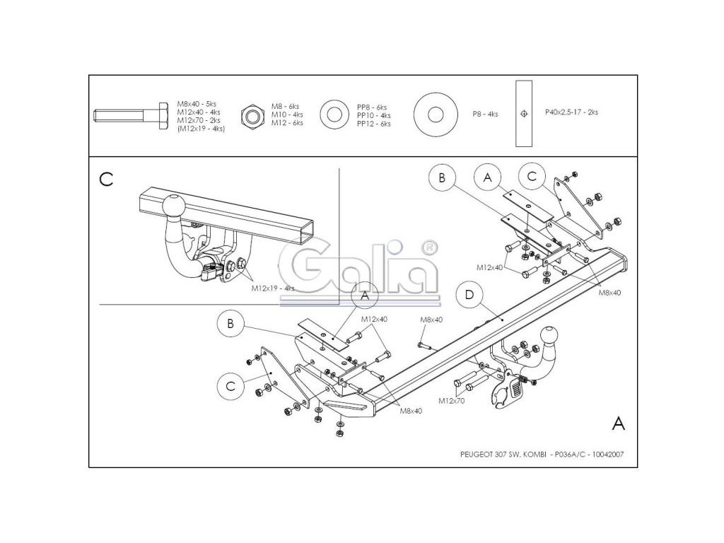Tažné zařízení Peugeot 307 SW kombi 2001-2005/04, odnímatelný bajonet, Galia Tažné zařízení Peugeot 307 SW kombi Upozornění - k primárnímu používání s nosiči kol doporučujeme volit pevné tažné zařízení. V důsledku dynamického působení svislého zatížení dochází ke snižování životnosti bajonetových systémů. KVALITNÍ TAŽNÉ ZAŘÍZENÍ, KTERÉ NEREZAVÍ, ZA NEJLEPŠÍ CENU Tažné zařízení největšího slovenského výrobce má unikátní povrchovou úpravu zinkováním s 10-ti letou zárukou na ochranu proti korozi. Zinkování vytváří stříbrný povrch, který se po čase vlivem oxidace změní na šedý odstín. Přesnou sériovou výrobou na nejmodernějších strojích je zaručena snadná a rychlá montáž na vozidlo a dobrá cena. Poloautomatický odnímatelný systém se vyznačuje nadstandardní spolehlivostí, jednoduchou obsluhou a kvalitou zpracování a výhodnou cenou. Součástí dodávky je kryt kulového čepu, záslepka a pouzdro čepu po odejmutí. Tažné zařízení je homologováno dle předpisu ECE 55R nebo EU94/20. Výrobce: Gália Slovakia s.r.o., SlovenskoDoplňkové parametry