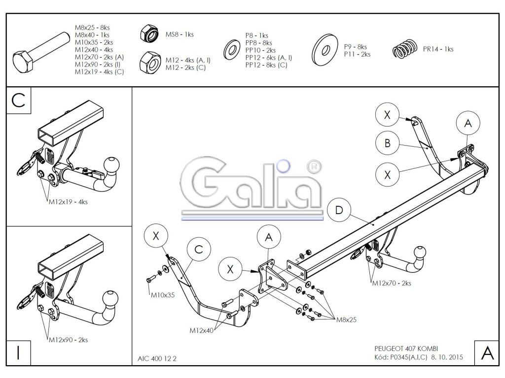 Tažné zařízení PEUGEOT 407 SW (kombi), 2004 - 2011 Poznámka: na inovovaném modelu P407 2008 - je třeba řezat ve spodní části nárazníku + KVALITNÍ TAŽNÉ ZAŘÍZENÍ, KTERÉ NEREZAVÍ, ZA NEJLEPŠÍ CENU + Tažné zařízení největšího slovenského výrobce má unikátní povrchovou úpravu zinkováním s 10-ti letou zárukou na ochranu proti korozi. Zinkování vytváří stříbrný povrch, který se po čase vlivem oxidace změní na šedý odstín. Přesnou sériovou výrobou na nejmodernějších strojích je zaručena snadná a rychlá montáž na vozidlo a dobrá cena. Tažné zařízení je homologováno dle předpisu ECE 55R nebo EU94/20. Výrobce: GALIA Slovakia s.r.o., SlovenskoDoplňkové parametry