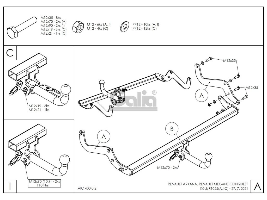 Tažné zařízení Renault Arkana 2021- , bajonet, Galia