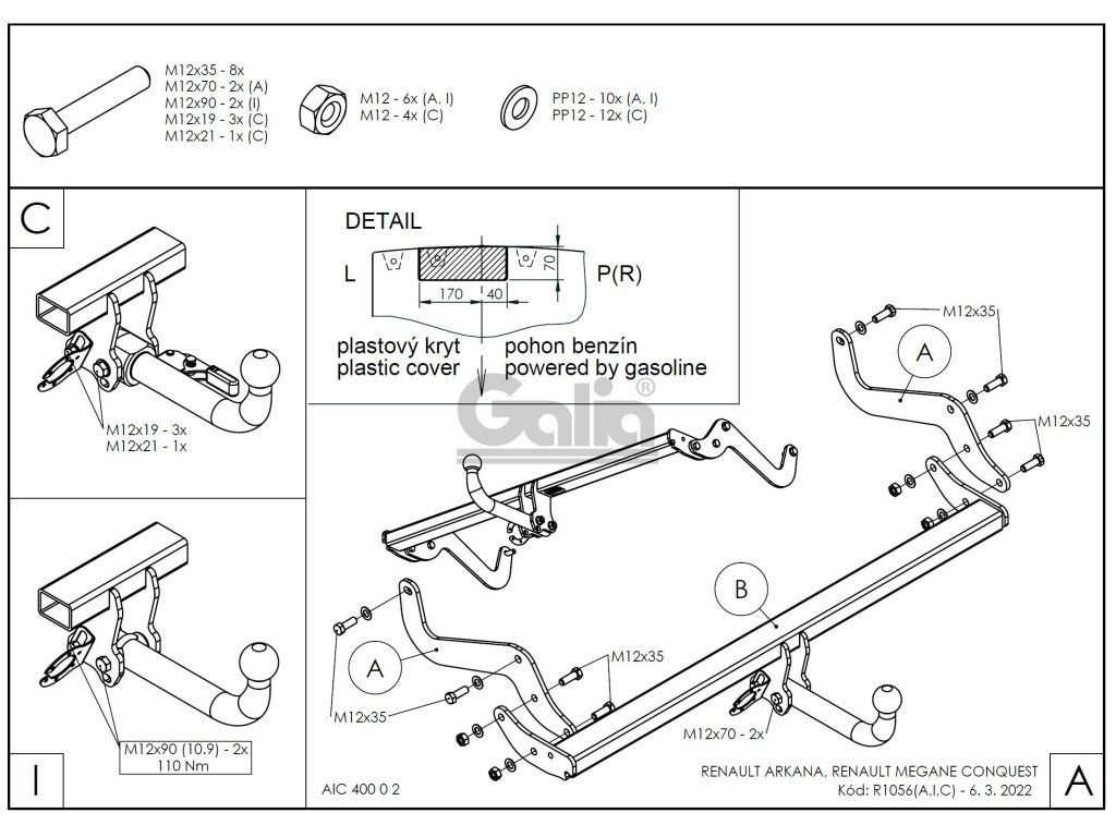 Tažné zařízení Renault Arkana 2021- , pevné, Galia