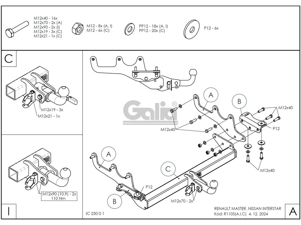 Tažné zařízení Renault Master/Nissan Interstar 24-, bajonetUpozornění - k primárnímu používání s nosiči kol doporučujeme volit pevné tažné zařízení. V důsledku dynamického působení svislého zatížení dochází ke snižování životnosti bajonetových systémů.