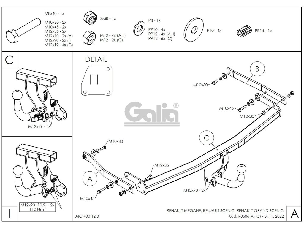 Tažné zařízení Renault Megane HB 2002-2009 (II), pevný čep 2 šrouby, Galia Tažné zařízení Renault Megane HB / Scenic / Grand Scenic + KVALITNÍ TAŽNÉ ZAŘÍZENÍ, KTERÉ NEREZAVÍ, ZA NEJLEPŠÍ CENU + Tažné zařízení největšího slovenského výrobce má unikátní povrchovou úpravu zinkováním s 10-ti letou zárukou na ochranu proti korozi. Zinkování vytváří stříbrný povrch, který se po čase vlivem oxidace změní na šedý odstín. Přesnou sériovou výrobou na nejmodernějších strojích je zaručena snadná a rychlá montáž na vozidlo a dobrá cena. Tažné zařízení je homologováno dle předpisu ECE 55R nebo EU94/20. Výrobce: Gália Slovakia s.r.o., SlovenskoDoplňkové parametry