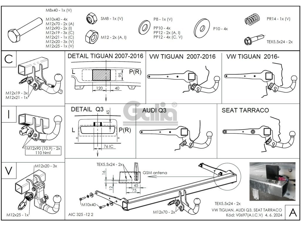 Tažné zařízení Seat Tarraco 2020/11- F.L. , bajonet, Galia
