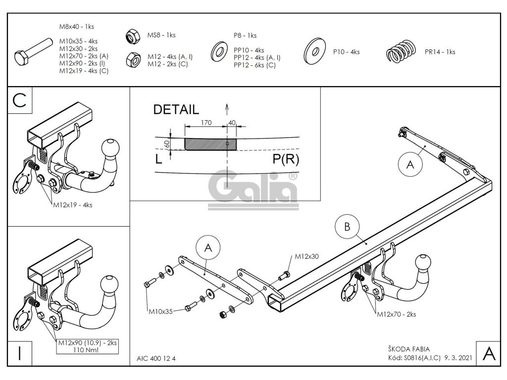 Výrobce: Gália Slovakia s.r.o., Slovensko RS provedení není schváleno pro tažení přívěsu!