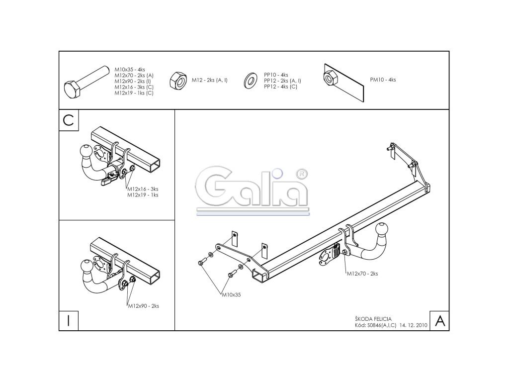 Tažné zařízení Škoda Felicia HB 1995-2002, pevný čep 2 šrouby, Galia