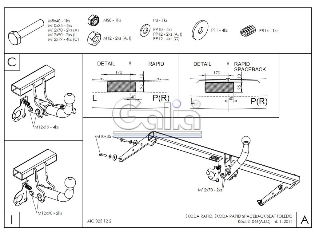 Tažné zařízení Škoda Rapid 2012- , pevný čep 2 šrouby, GaliaTažné zařízení pro Škoda Rapid od největšího slovenského výrobce má unikátní povrchovou úpravu zinkováním s 10-ti letou zárukou na ochranu proti korozi.
